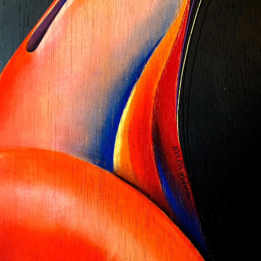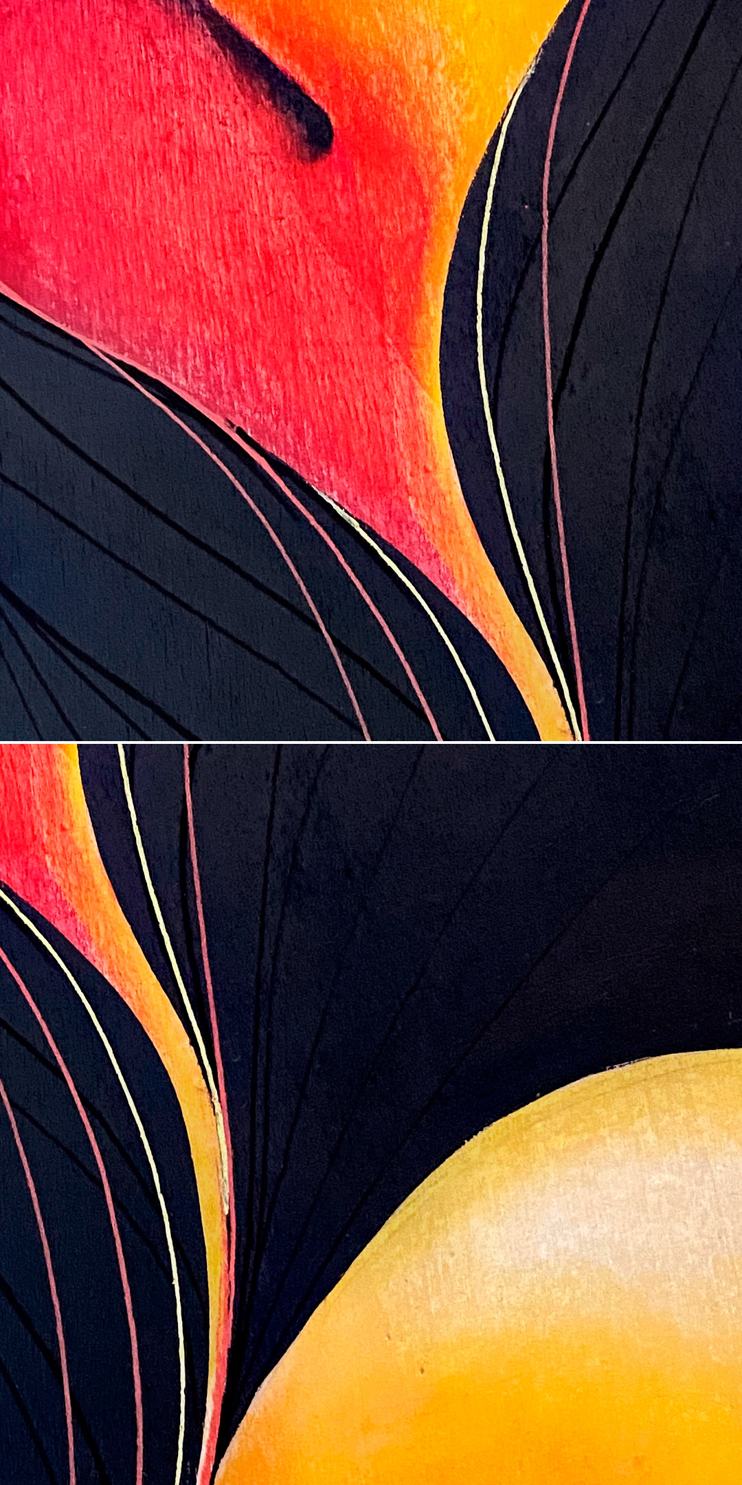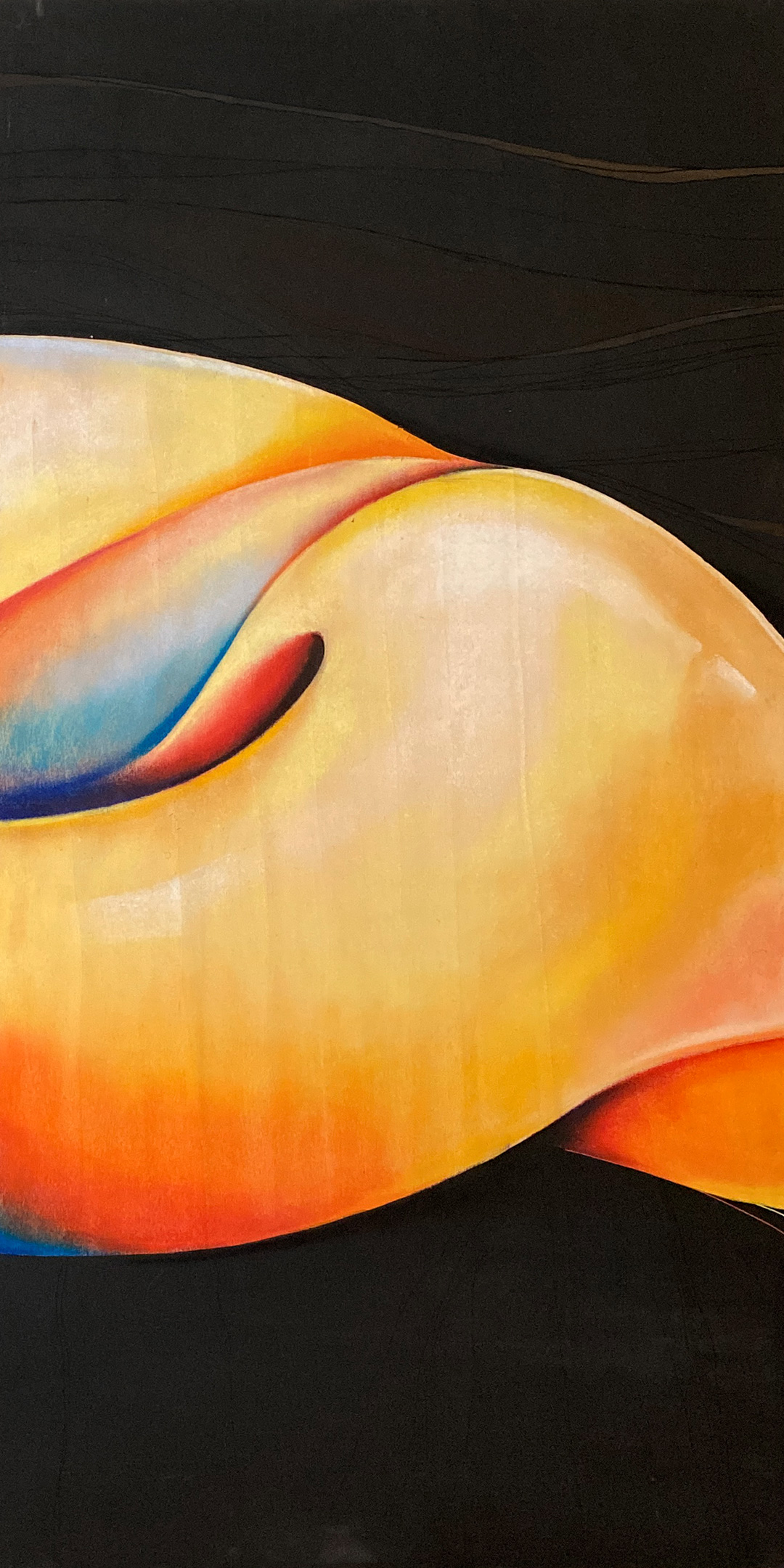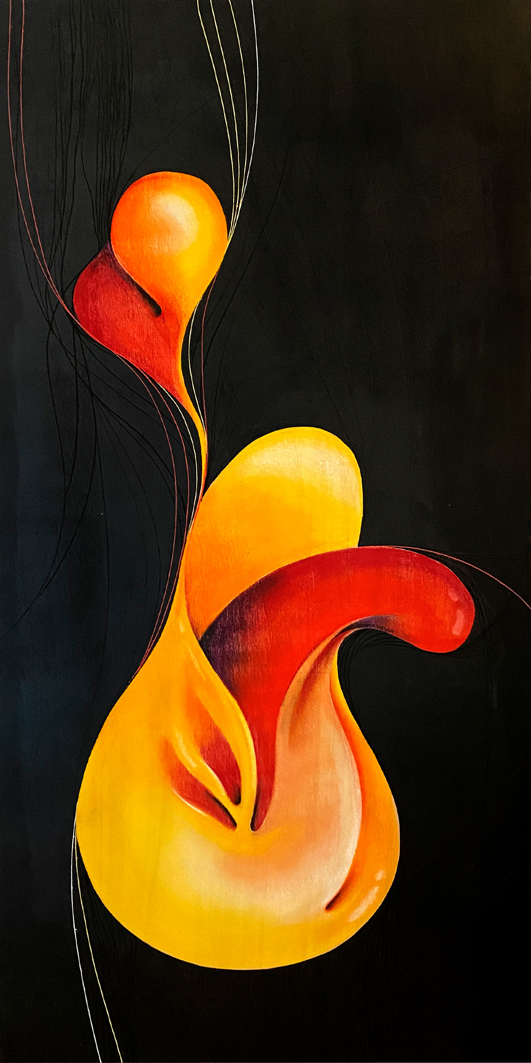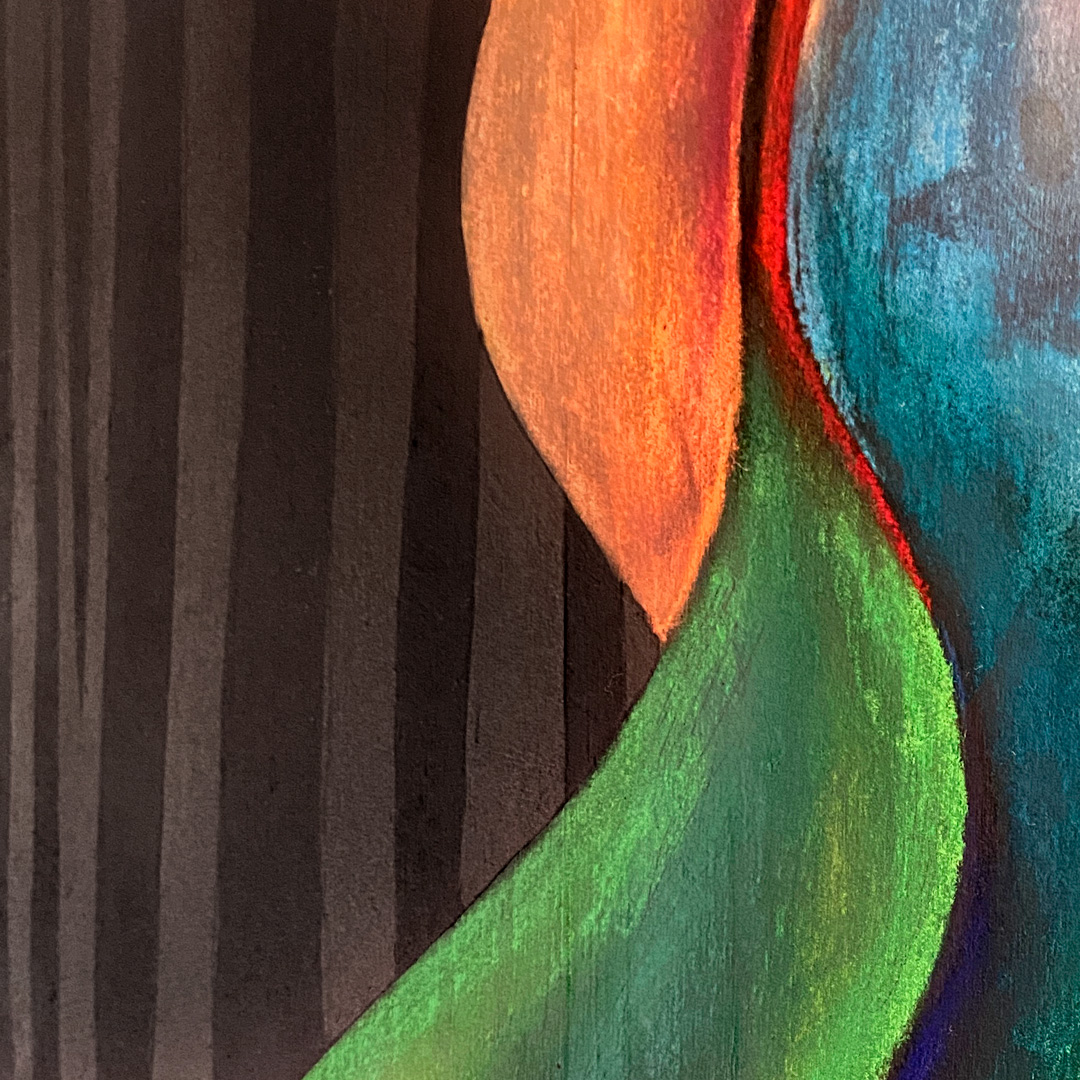 Las Cromatosas son, en general, abstracciones. Torciones, entrantes, salientes, sinuosas… a veces son un ente completo, otras son el tránsito entre dos momentos. Siempre flotantes, sin pies ni cabeza, hablan de la sensualidad, el crecimiento y la creación. Los originales están hechos con tiza-pastel sobre diversos tipos de madera.
