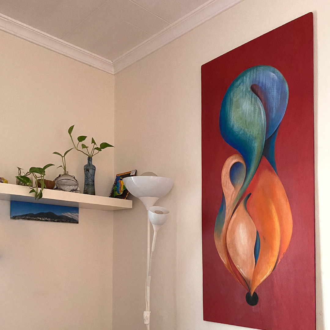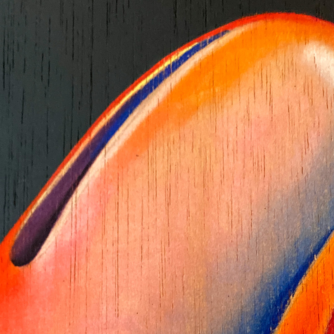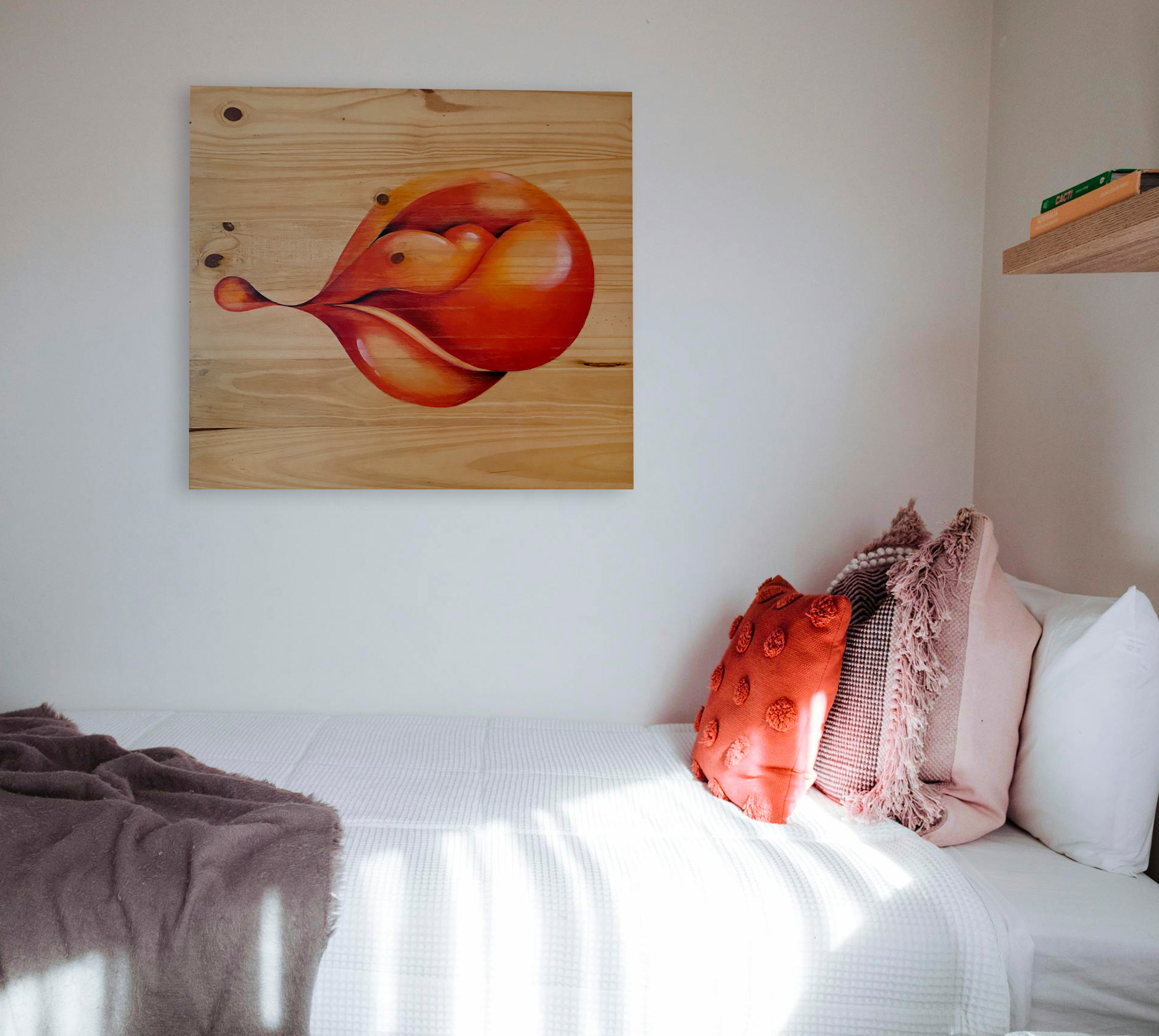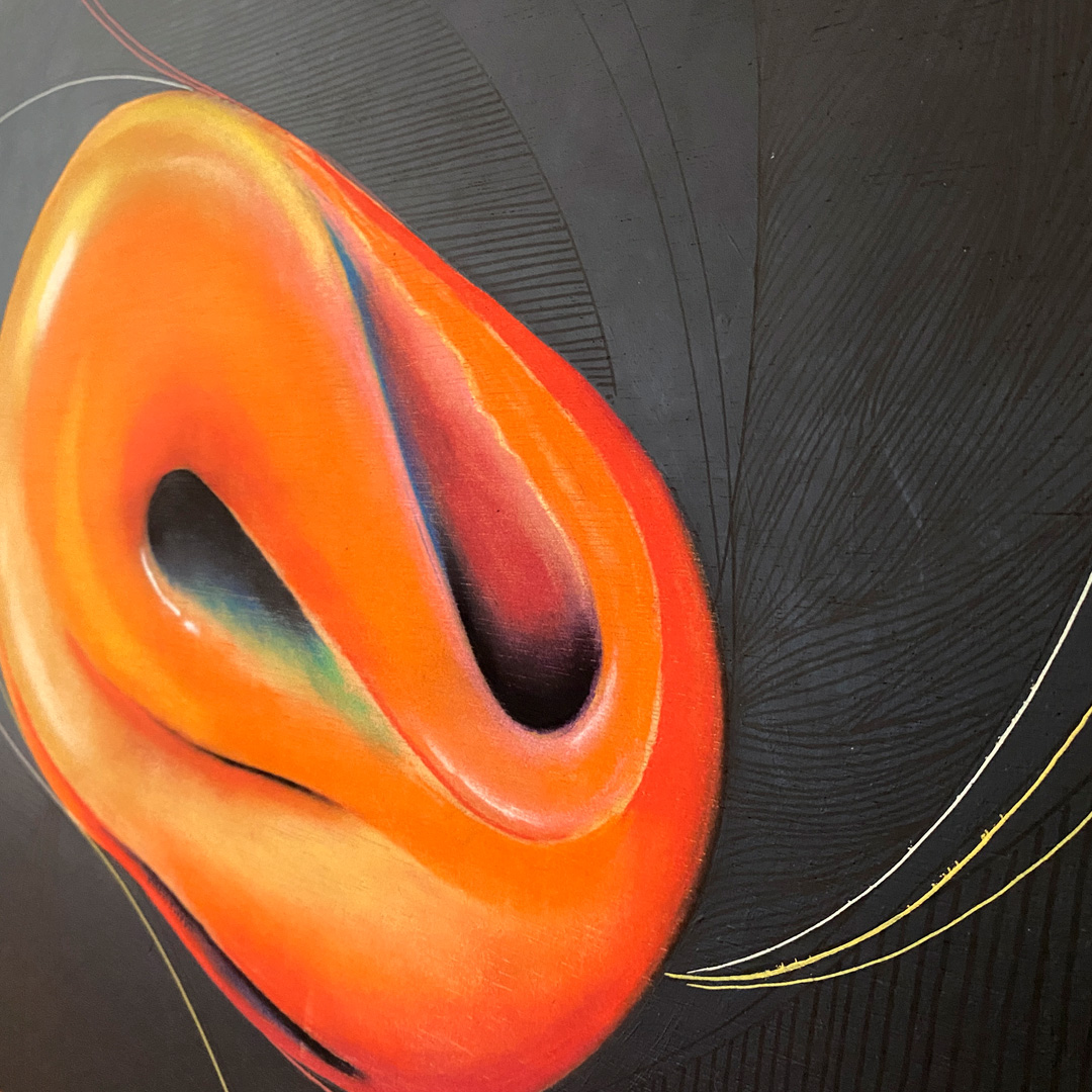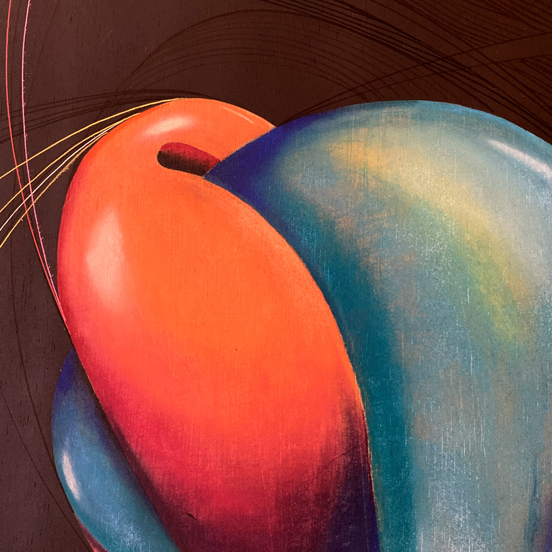 Las Cromatosas son, en general, abstracciones. Torciones, entrantes, salientes, sinuosas… a veces son un ente completo, otras son el tránsito entre dos momentos. Siempre flotantes, sin pies ni cabeza, hablan de la sensualidad, el crecimiento y la creación. Los originales están hechos con tiza-pastel sobre diversos tipos de madera.