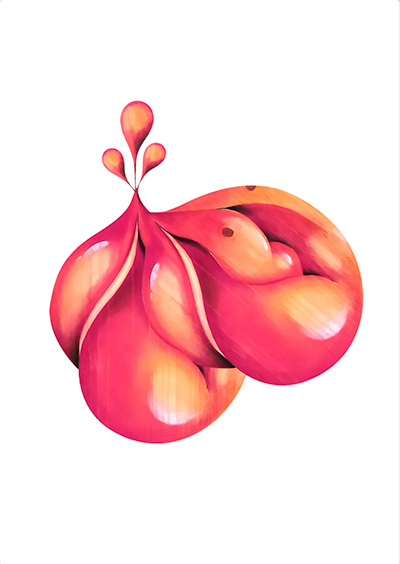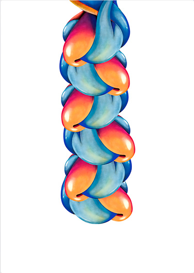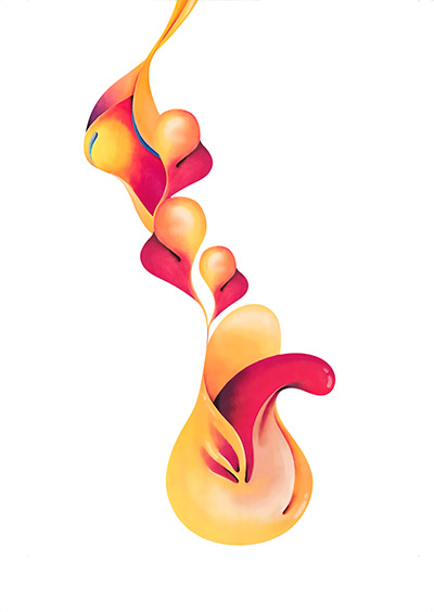 Las Cromatosas son, en general, abstracciones. Torciones, entrantes, salientes, sinuosas… a veces son un ente completo, otras son el tránsito entre dos momentos. Siempre flotantes, sin pies ni cabeza, hablan de la sensualidad, el crecimiento y la creación. Los originales están hechos con tiza-pastel sobre diversos tipos de madera.